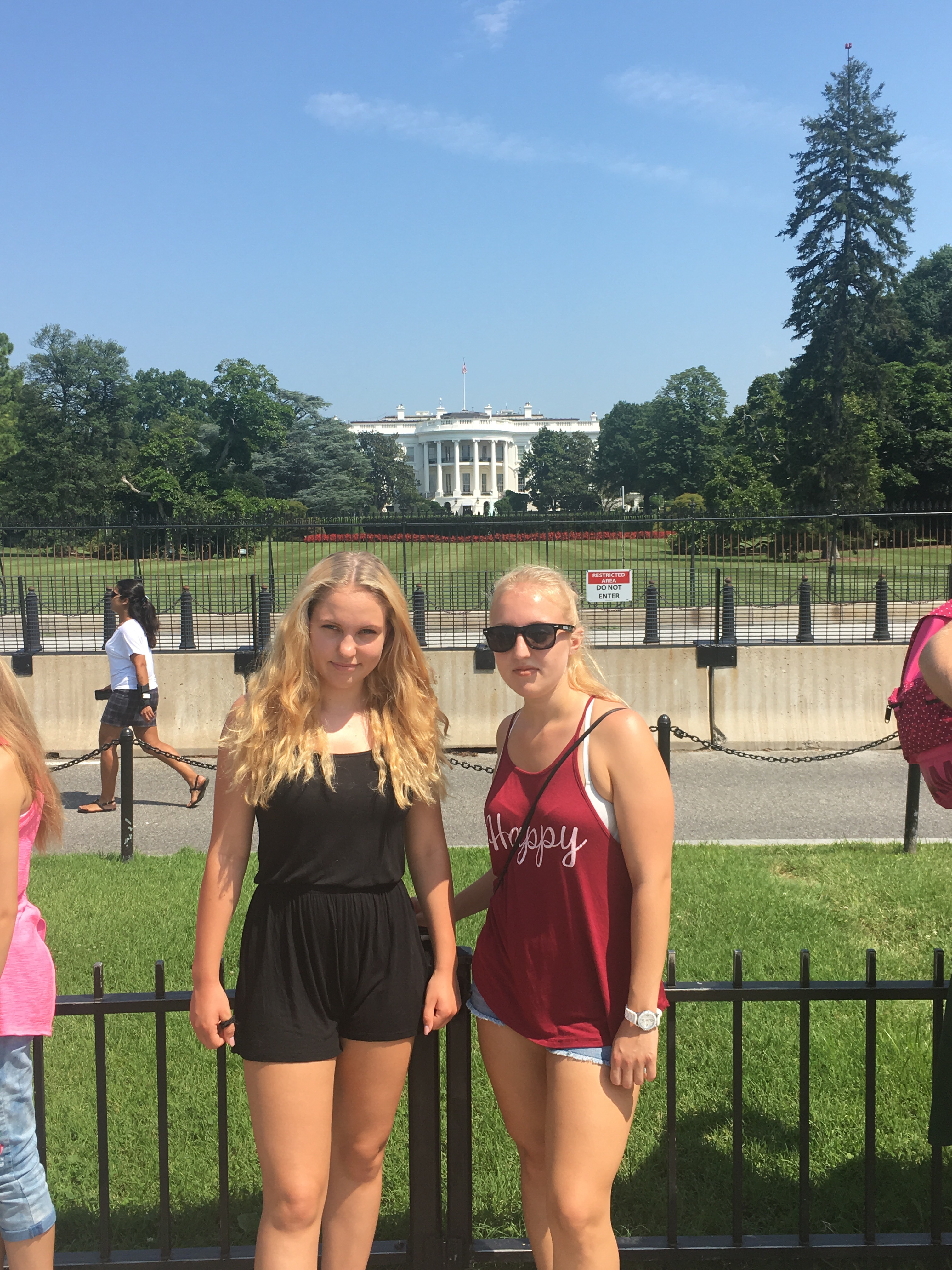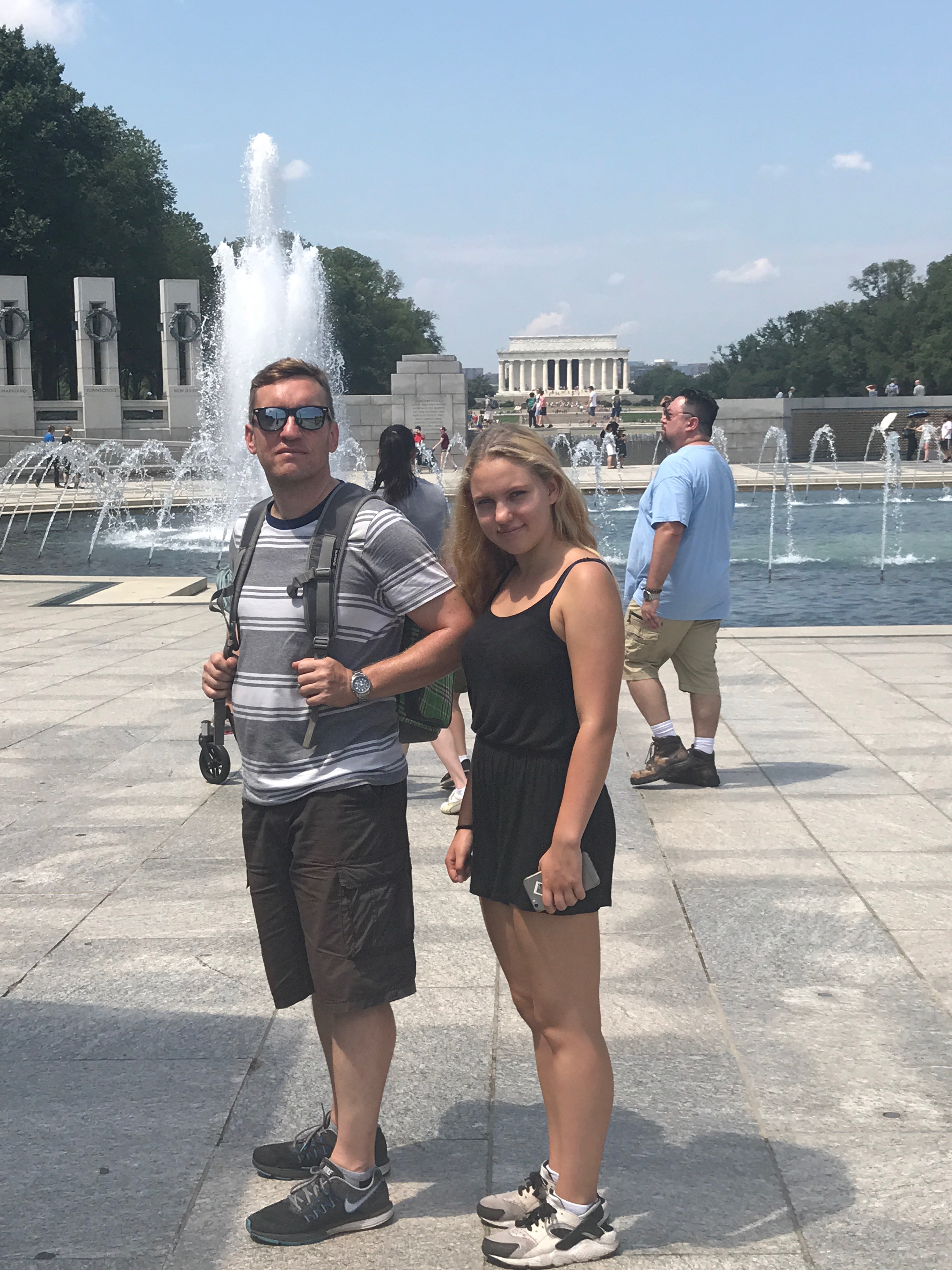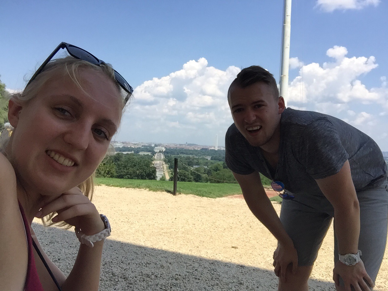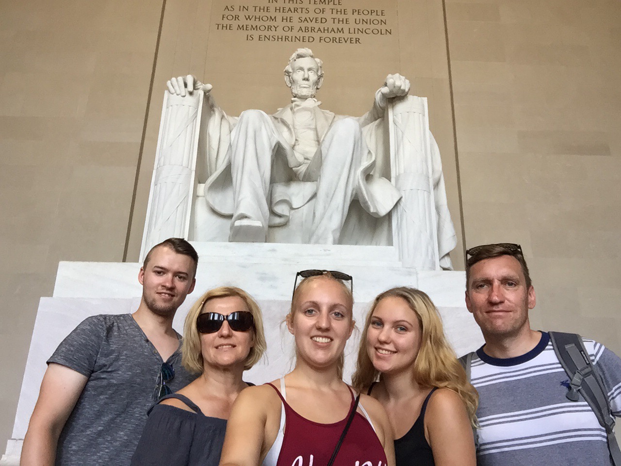 Heute schliefen wir alle mal ein wenig länger, bis 8 Uhr und fuhren mit dem Bus nach dem Frühstück zum Weißen Haus. Dort angekommen machten wir viele Fotos und liefen auf die andere Seite. Dann liefen wir zum Washington Monument, machten eine Pause und ruhten und aus. Dann liefen wir zum Lincoln Memorial. Dort machten wir auch viele Fotos. Unser nächstes Ziel war dann das Grab von John F. Kennedy. Das lag ca. 2km entfernt und der Weg lag in der prallen Sonne. Heute haben wir gut Farbe bekommen ☺ Das Grab bzw. der gesamte Friedhof war sehr interessant. Als wir bei den Gräbern der unbekannten Soldaten ankamen, sahen wir bei einen Wachwechsel für die Gräber zu. Es war interessant den Formalitäten zuzusehen. Auf dem Weg zurück zur Bushaltestelle sahen wir mehrere Pferde, die einen Sarg den Berg hinauf zogen. Mit dem Bus fuhren wir zum Capitol und dann fuhren wir nach Hause. Dort machten wir uns frisch und fuhren abends noch mal mit dem Auto durch die Stadt. Jetzt werden wir ins Bett gehen und morgen fahren wir weiter , bis dann 🙂 und heute gibt es mal unser Auto zu sehen und unser Hotelzimmer. 🙂