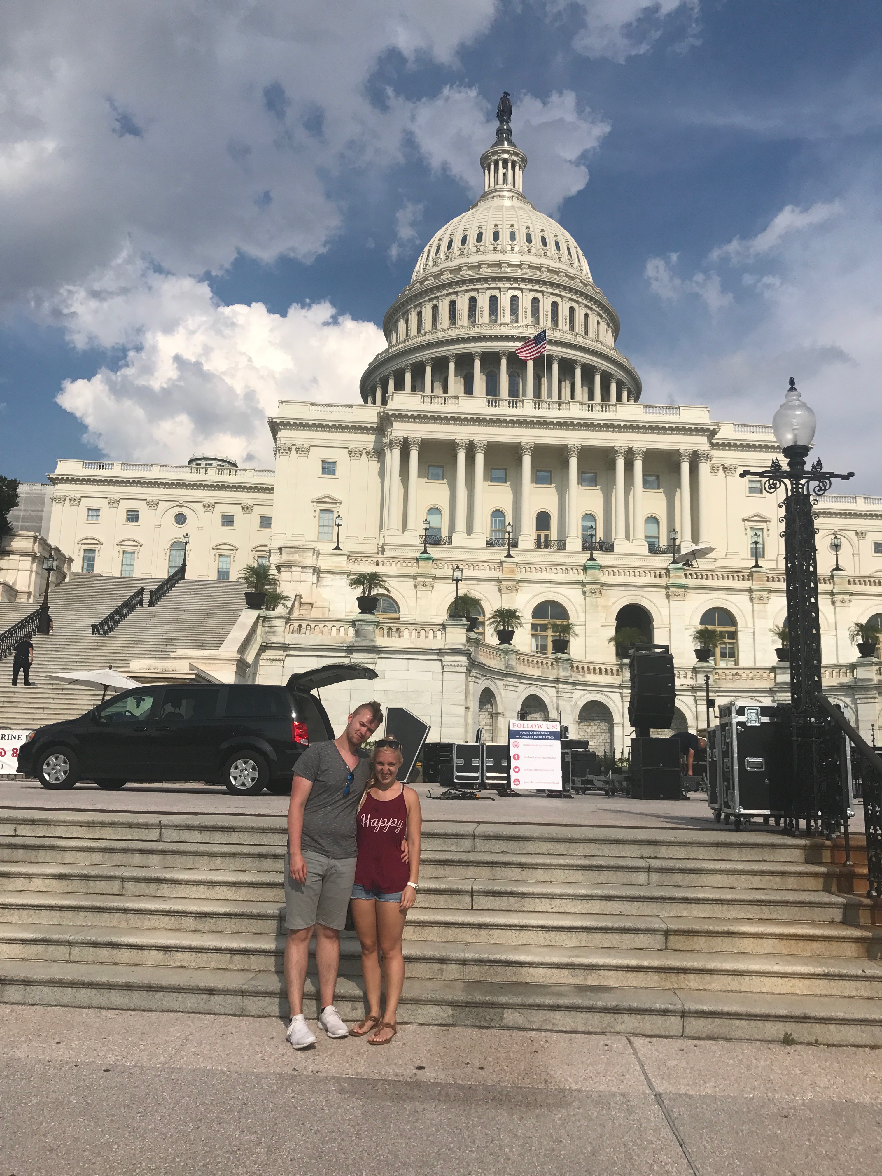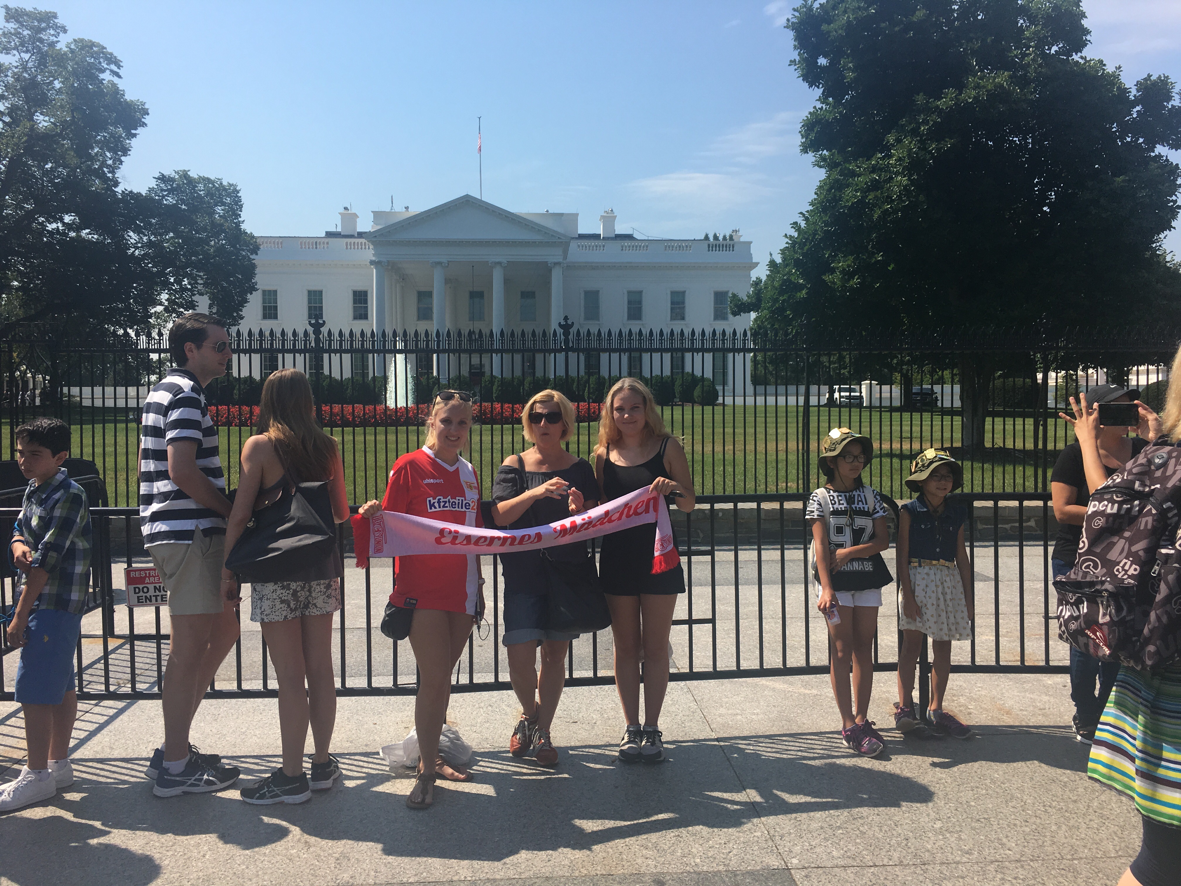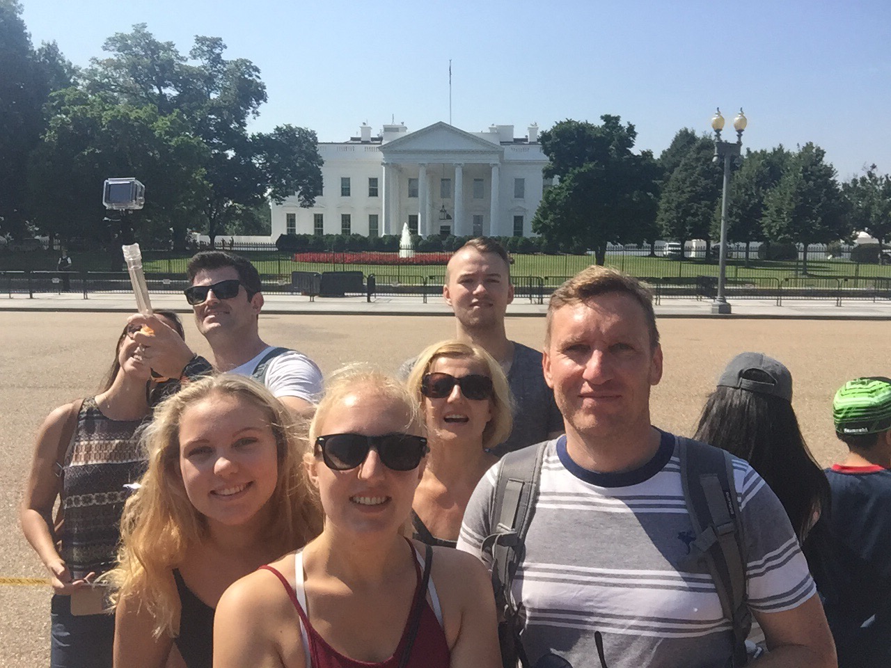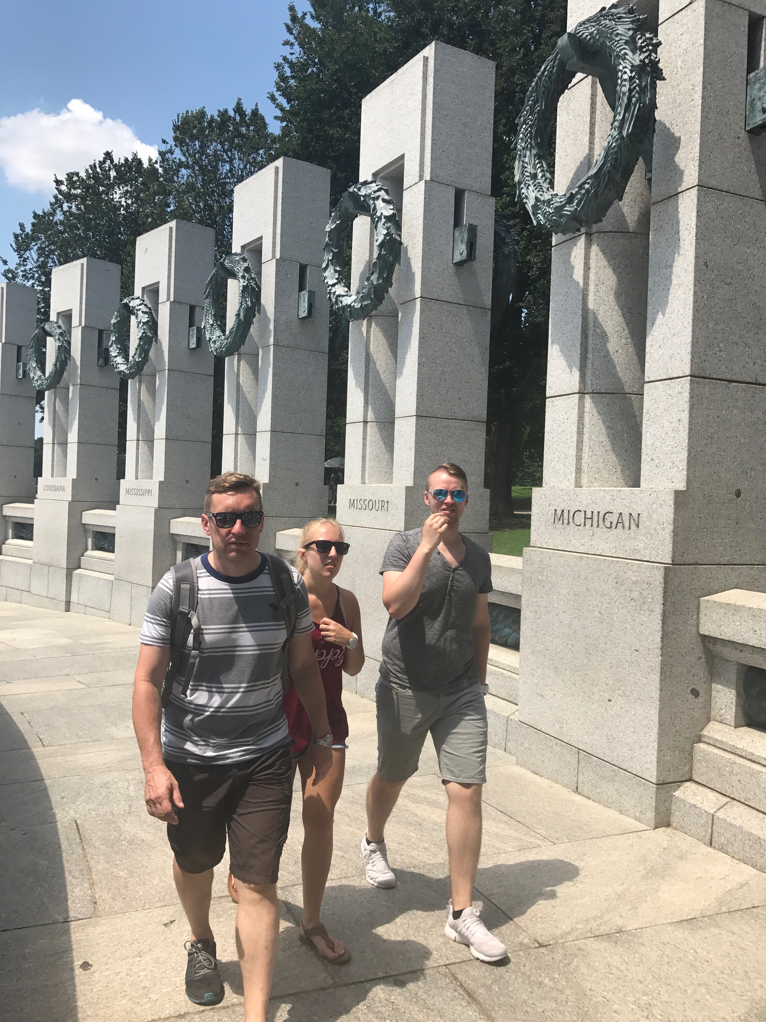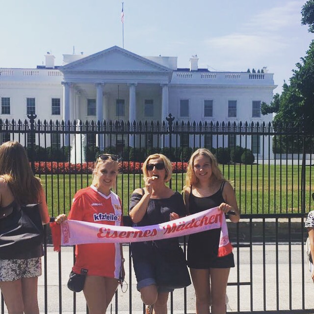 Heute schliefen wir alle mal ein wenig länger, bis 8 Uhr und fuhren mit dem Bus nach dem Frühstück zum Weißen Haus. Dort angekommen machten wir viele Fotos und liefen auf die andere Seite. Dann liefen wir zum Washington Monument, machten eine Pause und ruhten und aus. Dann liefen wir zum Lincoln Memorial. Dort machten wir auch viele Fotos. Unser nächstes Ziel war dann das Grab von John F. Kennedy. Das lag ca. 2km entfernt und der Weg lag in der prallen Sonne. Heute haben wir gut Farbe bekommen ☺ Das Grab bzw. der gesamte Friedhof war sehr interessant. Als wir bei den Gräbern der unbekannten Soldaten ankamen, sahen wir bei einen Wachwechsel für die Gräber zu. Es war interessant den Formalitäten zuzusehen. Auf dem Weg zurück zur Bushaltestelle sahen wir mehrere Pferde, die einen Sarg den Berg hinauf zogen. Mit dem Bus fuhren wir zum Capitol und dann fuhren wir nach Hause. Dort machten wir uns frisch und fuhren abends noch mal mit dem Auto durch die Stadt. Jetzt werden wir ins Bett gehen und morgen fahren wir weiter , bis dann 🙂 und heute gibt es mal unser Auto zu sehen und unser Hotelzimmer. 🙂