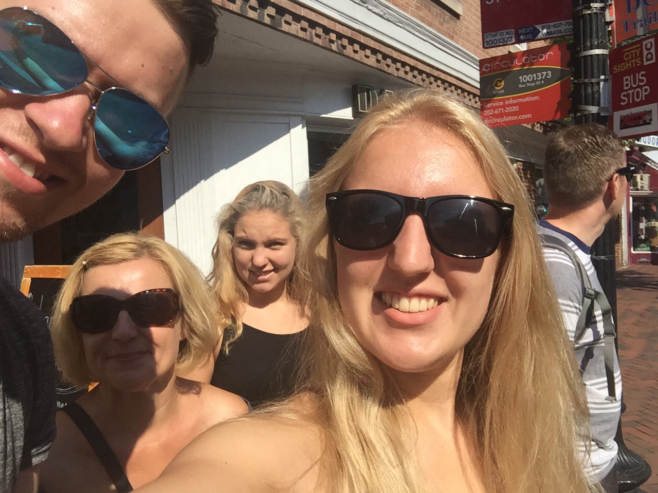 Heute morgen gingen wir das letzte Mal in New York frühstücken. Mama und ich aßen zum dritten Mal Ei mit Brot und Homefries (Kartoffeln) und die anderen aßen Frühstücksburger. Nach dem Essen trennten sich unsere Wege, denn Papa fuhr zur Autovermietung und wir Mädels + Sven liefen zum Hotel und packten die Koffer und checkten anschließend aus. Gegen 11:45 Uhr fuhren wir zum Studio eines Fernsehsenders. Dort warteten wir 60 min auf Eric Dane (Schauspieler aus der Serie Grey’s Anatomy / Marc Sloan) und wollten ein Foto mit ihm, jedoch lief er gleich zum Auto und wir bekamen kein Selfie. Papa wartete die ganze Zeit im Auto und nach 60 min ging es weiter Richtung Washington D.C.. Durch Baltimore sind wir auch gefahren, allerdings hat es sehr doll geregnet und deshalb sind wir im Auto geblieben. Kurz vor Washington suchten wir uns einen Supermarkt und kauften erstmal Lebensmittel ein. Danach fuhren wir zu unserem jetzigen Hotel und Georgetown. Wir sind unsere Straße hoch und runter gelaufen und haben eine Festnahme durch die Polizei mitbekommen. Morgen werden wir uns Washington genauer anschauen, also gute Nacht & bis Morgen!