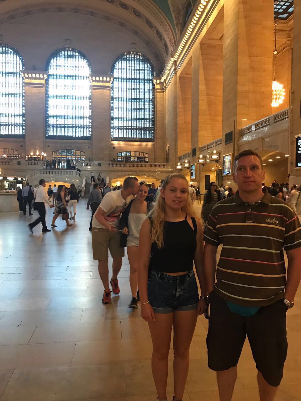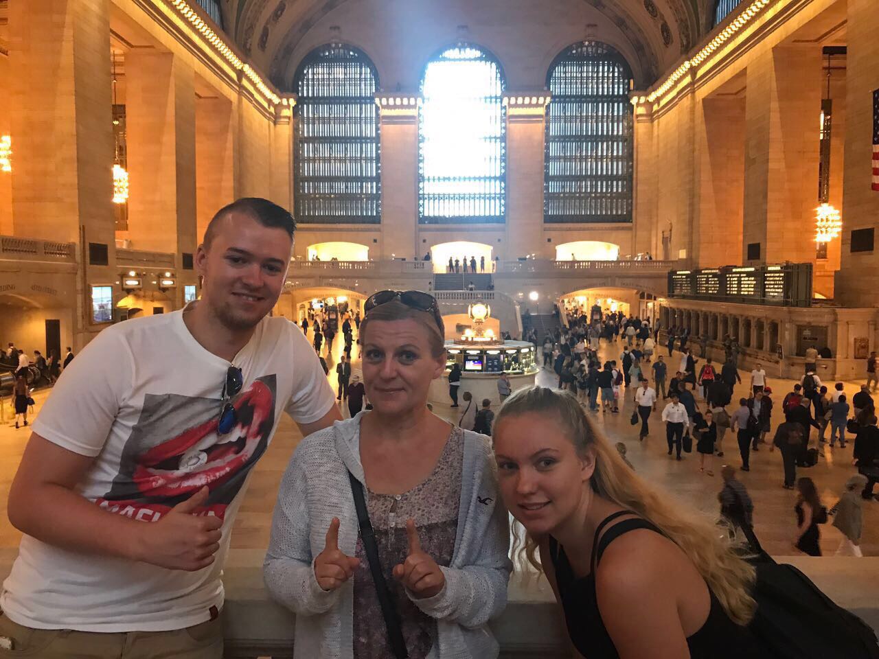 Gestern morgen mussten wir früher aufstehen, weil wir ins world Trade Center wollten. Dort angekommen fuhren wir mit einem Fahrstuhl hinauf und hatten einen richtig schönen Ausblick. Wir schauten ein Video und machten viele Fotos. Die Grand Central Station schauten wir uns auch an und kauften ein wenig Frühstück für uns. Wir sind an diesem Tag das erste Mal mit der Subway gefahren und Mama hatte ihr Ticket zu langsam durch den Schlitz gezogen, sodass sie unter der Absperrung durchkriechen musste. Das war echt lustig ☺ Später waren wir dann nur noch shoppen und aßen bei Burger King unser Mittag. Nach ca. 10 km, die wir gestern gelaufen sind, fielen wir müde in unsere Betten.