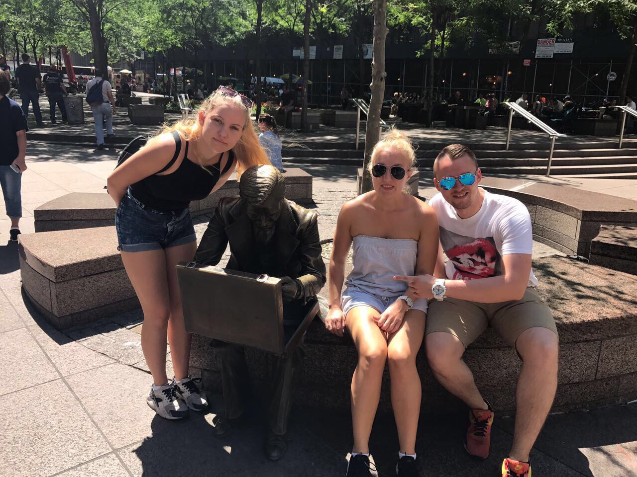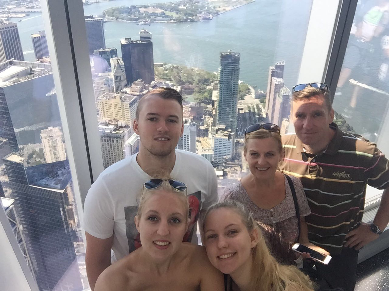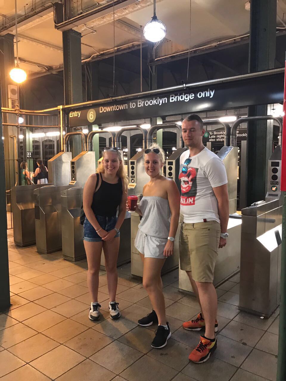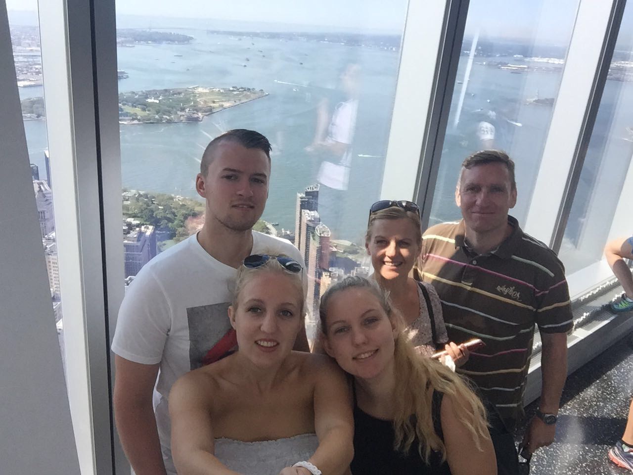 Gestern ging es für Dea, Sven und mich auf das Empire State Building. Wir hatten eine richtig schöne Aussicht. Danach aßen wir Frühstück und liefen zur Brooklyn Bridge. Zwischendurch machten wir einen Abstecher nach Chinatown. Dort gingen wir in einen Supermarkt um Wasser zu kaufen und sahen lebende Frösche, die man zum Essen kaufen konnte. Mama hat fast gebrochen 😂. Durch Little Italy sind wir auch gelaufen. An der Brooklyn Bridge angekommen, musste Mama diesmal nicht freigekauft werden 😂 . Außerdem haben wir einen Sticker vom schönsten Verein gesehen (Eisern !)☺. Danach liefen wir zur Staten Island Ferry und fuhren an der Freiheitsstatur vorbei 🗽. Nach der Tour mit der Fähre waren wir so knülle, dass wir mit dem Taxi zum Zentral Park führen. Im Park sahen wir Leute, die auf Rollschuhen tanzten. Die haben wir vor 4 Jahren schonmal gesehen. Wir legten uns auf die Wiese und schauten den tanzenden Menschen zu. Nachdem wir alle ausgeruht waren, machten wir einen Abstecher zum Times Square und schließlich dann ins Hotel. Wir sind insgesamt am Tag ganze 24 km gelaufen.