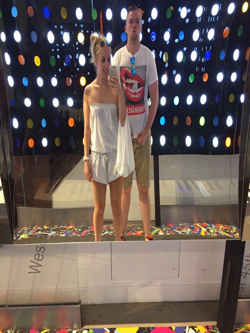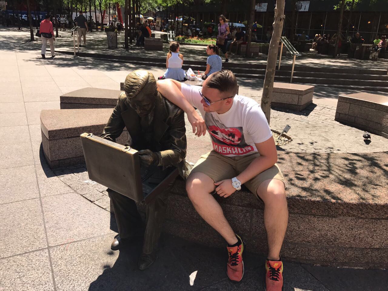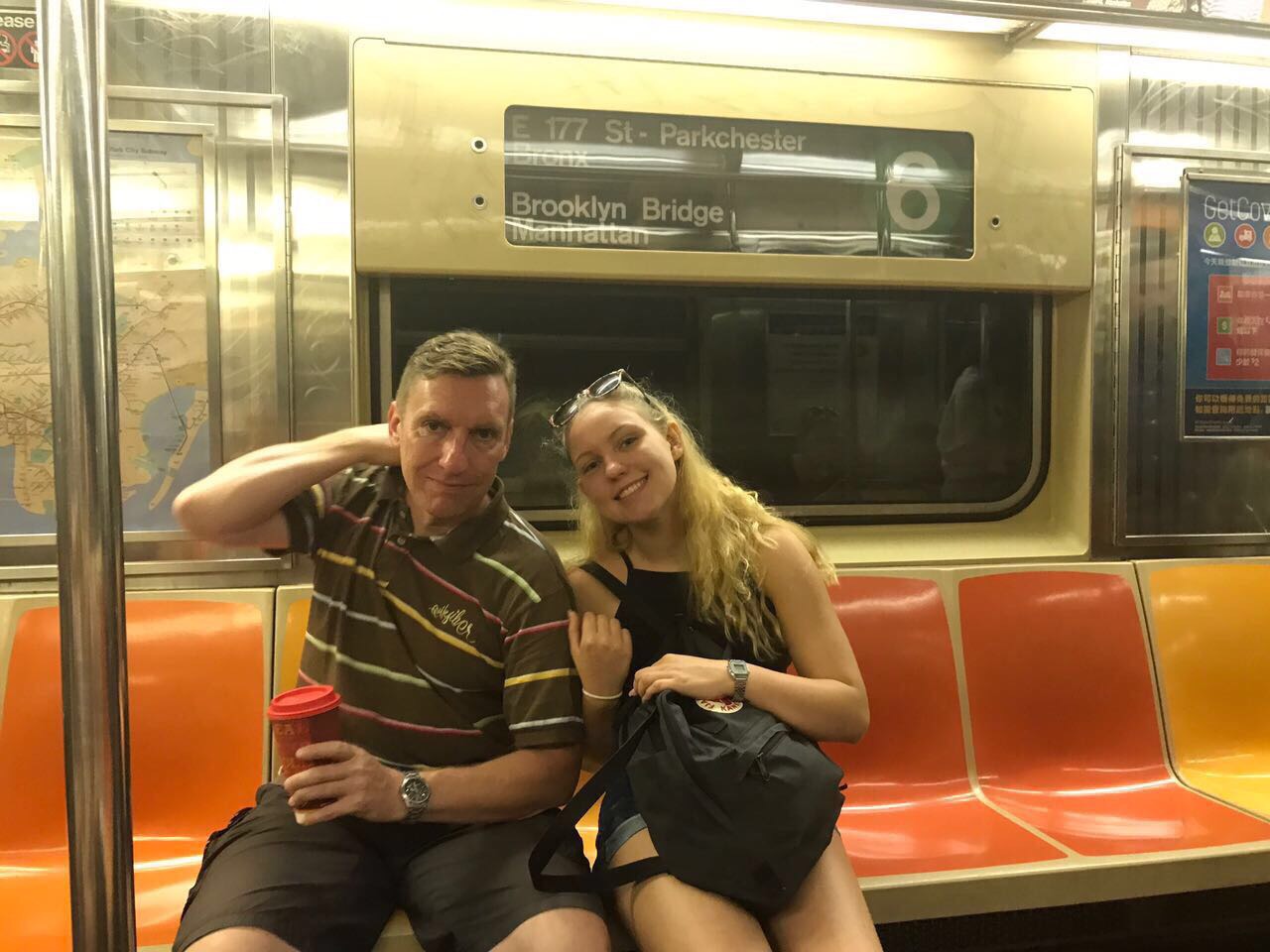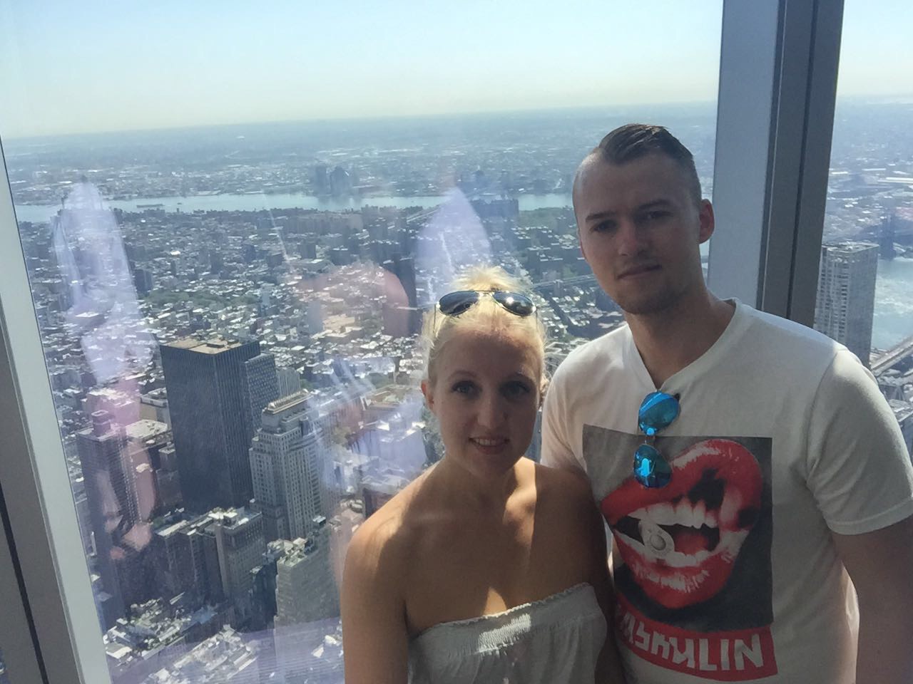 Gestern ging es für Dea, Sven und mich auf das Empire State Building. Wir hatten eine richtig schöne Aussicht. Danach aßen wir Frühstück und liefen zur Brooklyn Bridge. Zwischendurch machten wir einen Abstecher nach Chinatown. Dort gingen wir in einen Supermarkt um Wasser zu kaufen und sahen lebende Frösche, die man zum Essen kaufen konnte. Mama hat fast gebrochen 😂. Durch Little Italy sind wir auch gelaufen. An der Brooklyn Bridge angekommen, musste Mama diesmal nicht freigekauft werden 😂 . Außerdem haben wir einen Sticker vom schönsten Verein gesehen (Eisern !)☺. Danach liefen wir zur Staten Island Ferry und fuhren an der Freiheitsstatur vorbei 🗽. Nach der Tour mit der Fähre waren wir so knülle, dass wir mit dem Taxi zum Zentral Park führen. Im Park sahen wir Leute, die auf Rollschuhen tanzten. Die haben wir vor 4 Jahren schonmal gesehen. Wir legten uns auf die Wiese und schauten den tanzenden Menschen zu. Nachdem wir alle ausgeruht waren, machten wir einen Abstecher zum Times Square und schließlich dann ins Hotel. Wir sind insgesamt am Tag ganze 24 km gelaufen.
