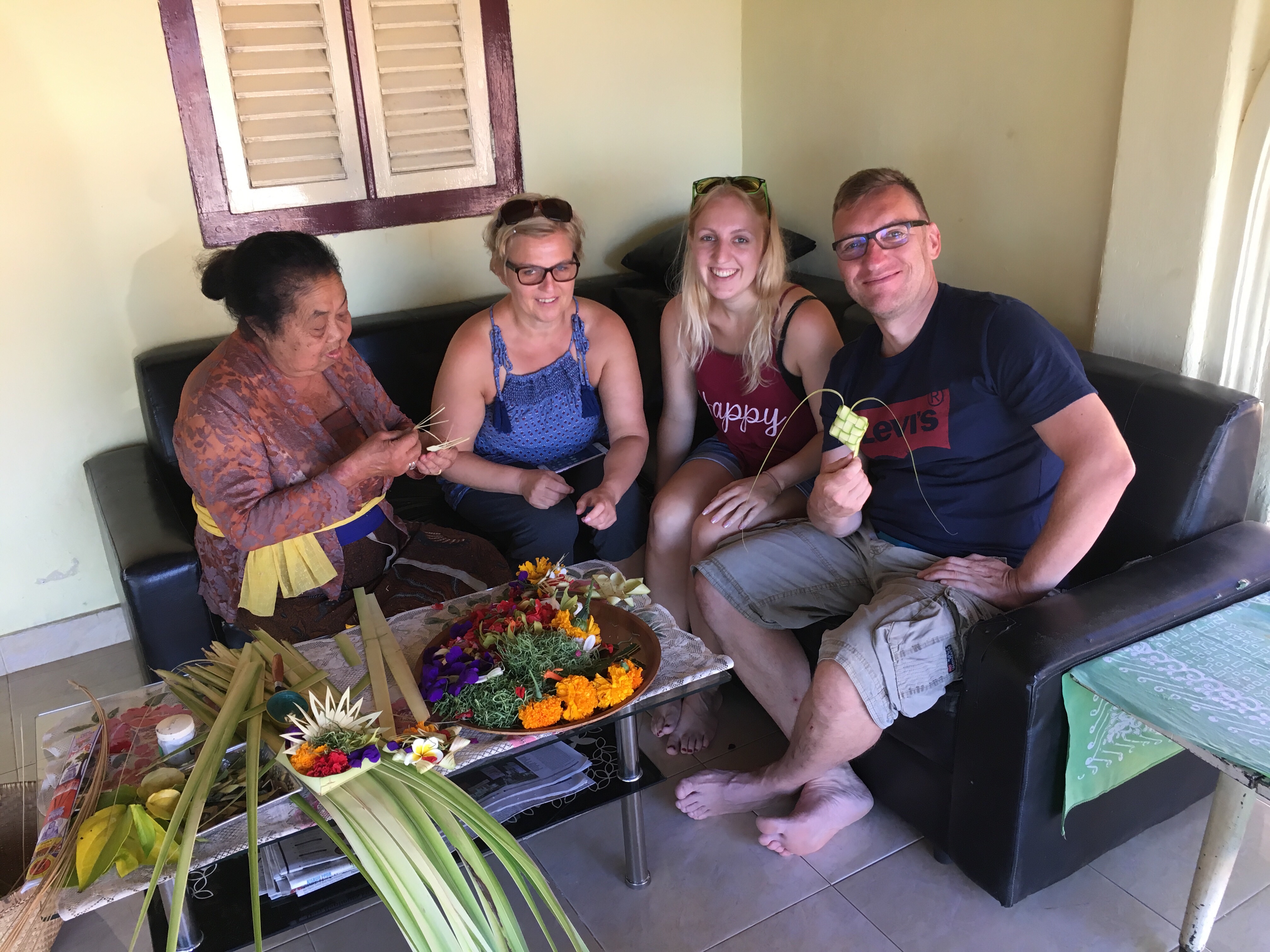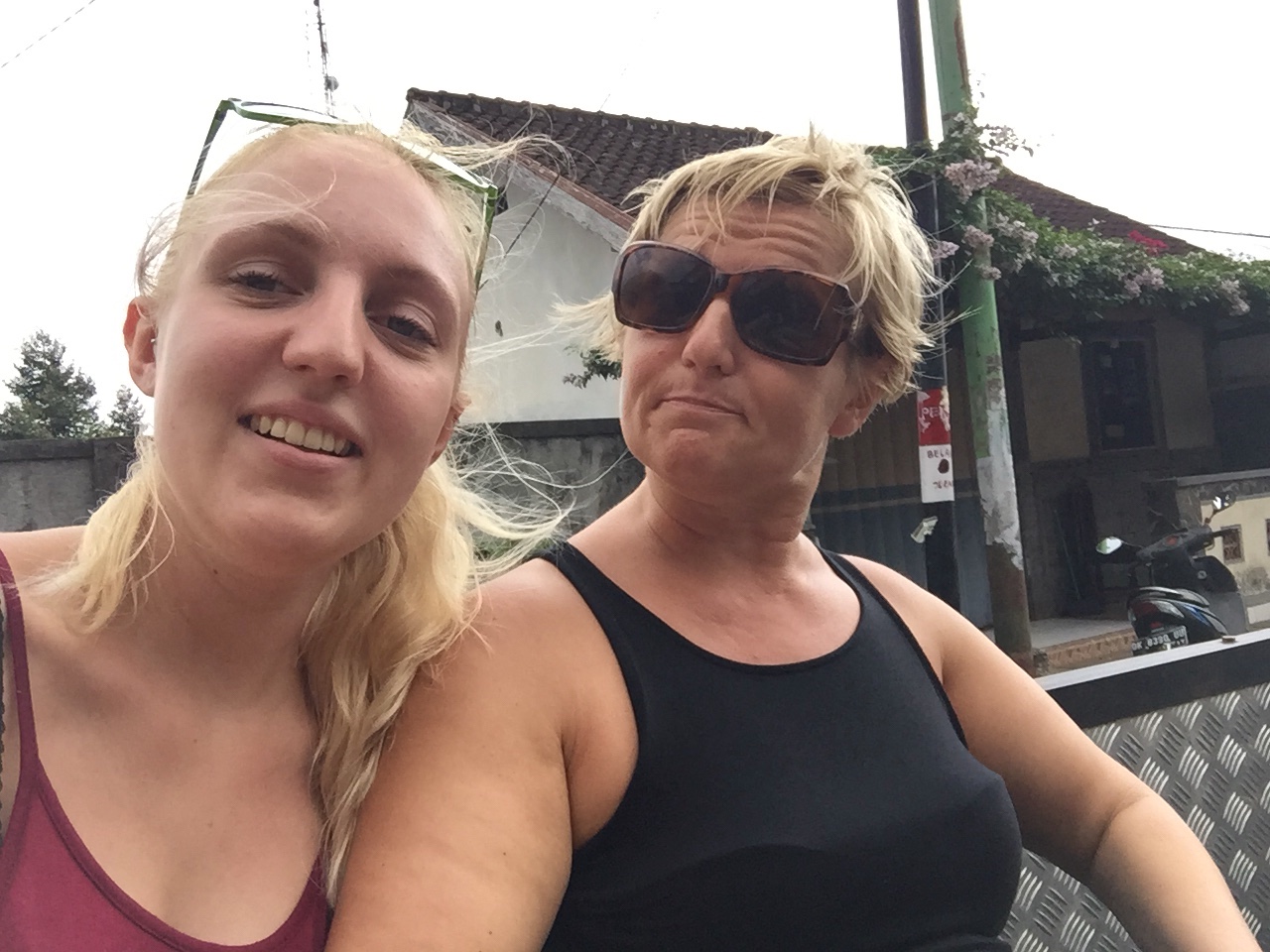 Gestern nach dem Frühstück mieteten wir uns Roller um die Gegend zu erkunden. Ich fuhr alleine auf einem und Mama und Papa zusammen auf den anderen. Es war ein wenig komisch denn hier herrscht ja links Verkehr. Nach kurzer Zeit hatten wir uns daran gewöhnt und wir genossen die Aussicht. Baden konnten wir leider nicht, da die Wellen zu hoch waren. Am Nachmittag hatten wir noch eine Jeep-Tour gebucht. Ein Mann holte uns ab und fuhr mit uns durch viele kleine und arme Dörfer. An einem Tempel hielten wir und genossen die Aussicht. Er erklärte uns den Glauben und den Tempel. Es war sehr interessant. Die Menschen die an den Hindu glauben graben zb die Toten nach einer Weile wieder aus und verbrenne die Knochen und werden die Asche in einen Fluss oder ins Meer :‘) Mama will jetzt doch nicht mehr auswandern, fand den Tag aber auch sehr schön:) Nachdem wir alles besichtigt hatten, führen wir zu einem kleinen Haus und ein Mann holte für eine Kokosnuss ohne Leiter von Baum. Papa probierte das auch, ist aber gescheitert ^^ dann dürften wir die Kokosnuss trinken und aßen das Fruchtfleisch. Es war sehr lecker und erfrischend. Danach fuhren wir wieder in unserer Unterkunft zurück und genossen den letzten Abend dort.